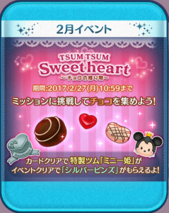 ■イベント名:TSUM TSUM Sweet heart(ツムツムスイートハート)~チョコの贈り物~