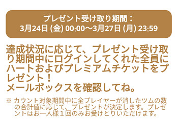 キャンペーン期間中に、ツムツムの全プレイヤーのツムを消した数に応じて以下の報酬がもらえます。