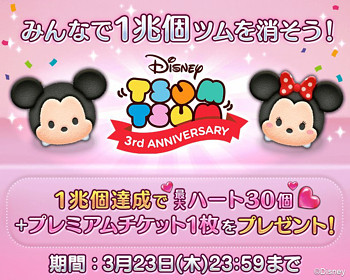 みんなでツムを1兆個消そうキャンペーン開催