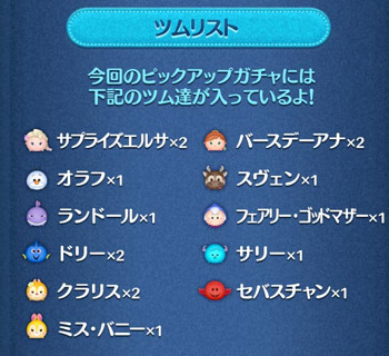 【ツムツム】2017年3月ピックアップガチャ第24弾の対象ツム【サプエル・曲付きエルサがラスト賞】