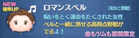 ロマンス野獣とロマンスベルはどちらも期間限定ツムであり、特にロマンスベルには「朝の風景」という曲付きです。