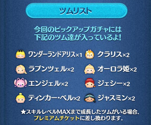 2017年6月に2回目(第2弾)のピックアップガチャではラインナップが「ワンダーランドアリス」「クラリス」「ラプンツェル」「ジャスミン」らが対象になっています。
