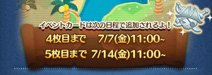 今回のイベントは全5枚のカード+オマケカードの合計6枚で、カードは7月7日と7月14日の2回に分けて追加されます。さらにミッション系イベントで宝箱ゲーム(ボーナスゲーム)があり、コインを大量獲得のチャンス!
