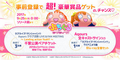 公式Twitter、LINE、Facebook、メールアドレスのいずれかで事前登録をすると、登録者の中から抽選でファンミーティングのチケットや、サイン入りBD全巻BOXが当たるチャンス!