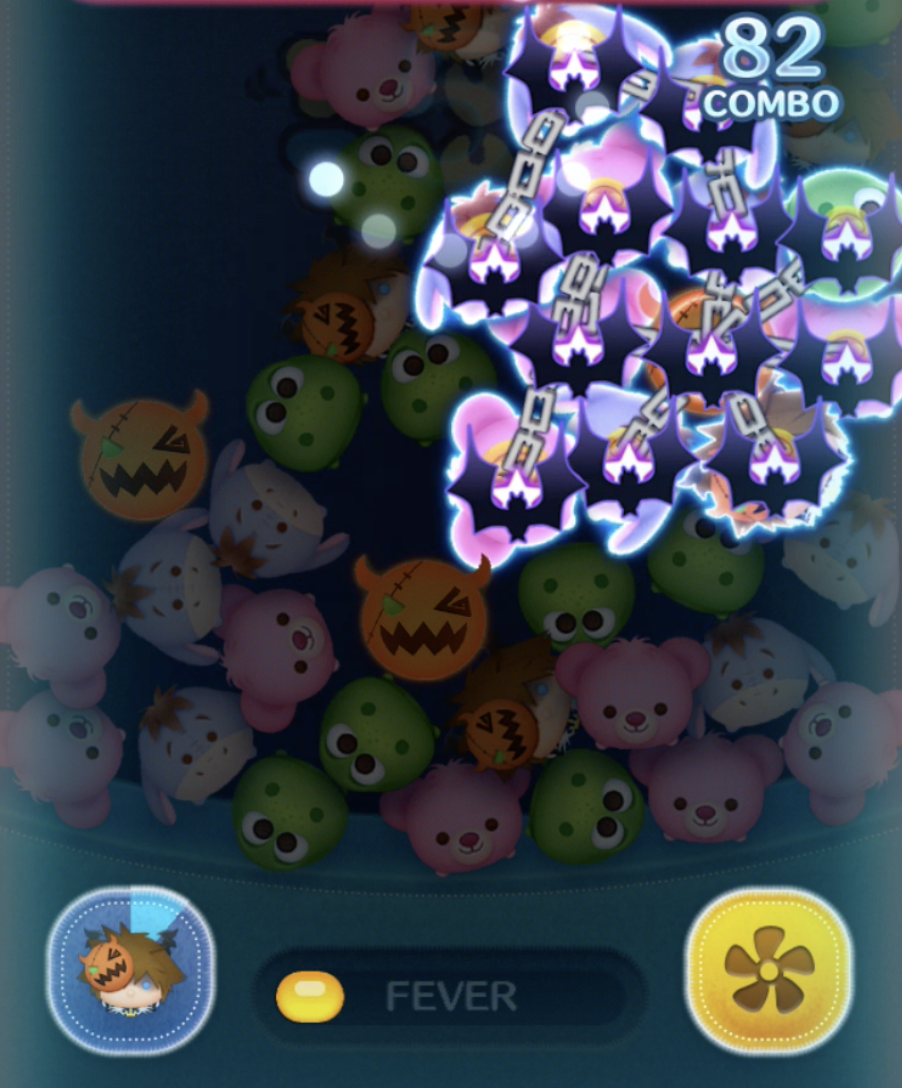 かぼちゃの周りでチェーンができるツムを巻き込んで消すので、同じツムが固まっているほど消去威力はアップします。