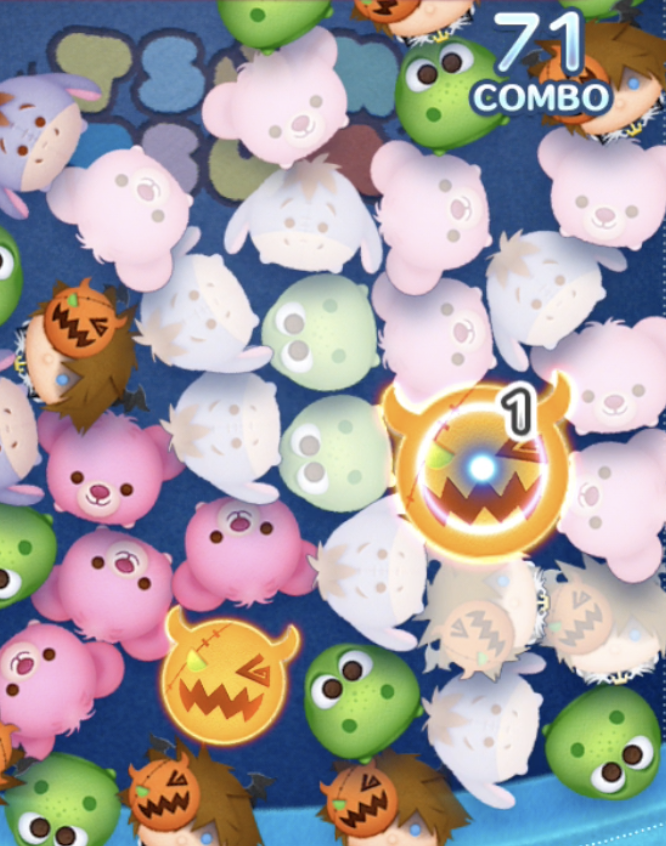 このかぼちゃをタップすると、その周りのツムを巻き込んで消します。