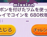 このミッションは、リボンを付けたツムをマイツムにして1プレイで680コイン稼ぐとクリアになります。