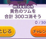 このミッションは、黄色いツムを合計300個消すとクリアになります。