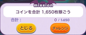 こちらのミッションは合計系ミッションであり、コインを1650枚稼げばクリアになります。