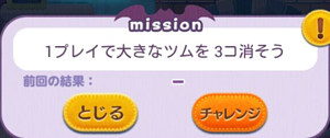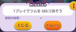 このミッションは、マイツムとサブツムを含んで585個のツムを消すとクリアになります。