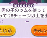 5階12個目のミッション「男の子のツムを使ってなぞって28チェーン以上を出そう」の攻略法です。