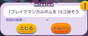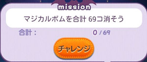 このミッションは、マジカルボムを1プレイで15個消すとクリアになります。
