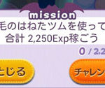 5階1個目のミッション「毛のはねたツムを使って合計2,250Exp稼ごう」の攻略法です。
