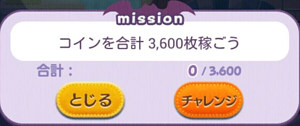 このミッションは、合計数のミッションです。コイン稼ぎをしつつコツコツクリアしましょう!