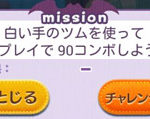 このミッションは、白い手のツムを使って1プレイで90コンボすればクリアとなります。