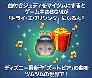 その後、ジュディは常駐ツムとして登場するのですが、曲付きではありません。