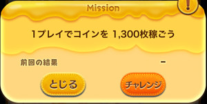 このミッションは、1プレイで1300コイン稼げばクリアです。