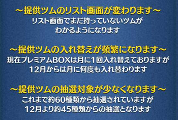 LINEディズニー ツムツム(Tsum Tsum)では2017年11月24日にお知らせがあったのですが、来月2017年12月1日より「プレミアムBOX」が仕様変更になります。