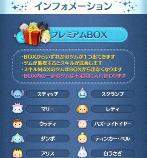 持っていないツムがわかる、対象ツム数の減少、月に何度も入れ替わりも行われるようですが、今回はプレミアムBOXの仕様変更についてまとめました。