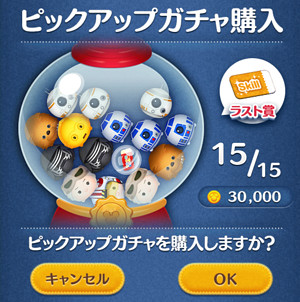 今回のピックアップガチャも15体のツムが入っています。そのため・・・