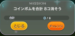 このミッションは、コインボムを合計で8個消すとクリアになります。