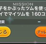 8枚目7個目のミッション「帽子をかぶったツムを使って1プレイでマイツムを160個消そう」の攻略法です。