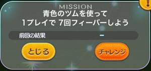2018年1月イベント「ディズニースターシアター」8枚目に「青色のツムを使って1プレイで7回フィーバーしよう」という指定ミッションがあります。