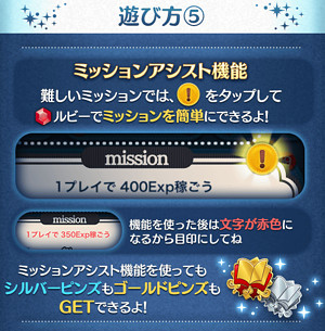 ただし、必要なルビー数は多めなのでおまけカードなどの、どうしてもクリアできそうにない難しいミッションのみ使用するようにしましょう。
