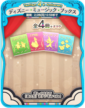 LINEディズニー ツムツム(Tsum Tsum)では、2018年2月に「ディズニーミュージックブックス」というイベントが開催されます。