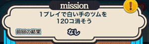 4冊目5個目のミッション「1プレイで白い手のツムを120個消そう」の攻略法です。