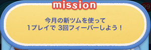 1枚目2個目のミッション「今月の新ツムを使って1プレイで3回フィーバーしよう!」の攻略法です。