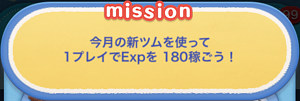 1枚目1個目のミッション「今月の新ツムを使って1プレイでExpを180稼ごう!」の攻略法です。