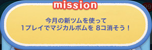 1枚目6個目のミッション「今月の新ツムを使って1プレイでマジカルボムを8個消そう!」の攻略法です。