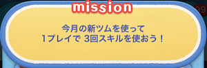 1枚目7個目のミッション「今月の新ツムを使って1プレイで3回スキルを使おう!」の攻略法です。