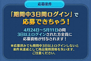 3日間ログインした方全員が対象になるのですが、応募しても3日間以上ログインしていない場合は無効になるので注意しましょう。