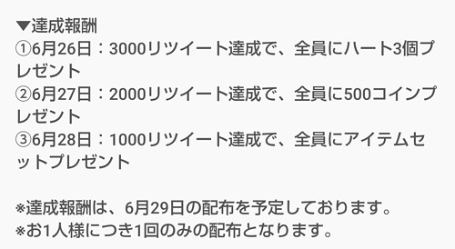 ・6月28日→1000リツイートで全員にアイテムチケットセット