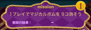 6枚目5個目のミッション「1プレイでマジカルボムを9個消そう」の攻略法です。