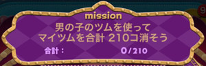 このミッションは、男の子のツムを使ってマイツムを合計210個消すとクリアになります。