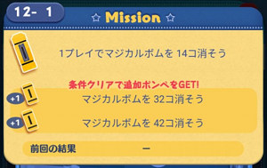このミッションは、マジカルボムを12個、28個、40個消すとクリアになります。