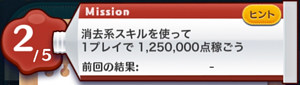このミッションは、消去系スキルのツムで225万点稼ぐとクリアになります。