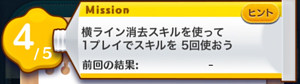 8枚目4は「横ライン消去スキルで1プレイでスキルを5回使おう」です。
