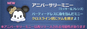 そして4体目はログインボーナスとイベント報酬でアニバーサリーミニーのツムが1体入手可能です