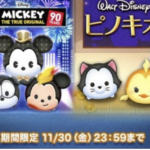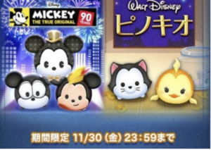 ミッキー90周年ログインボーナス | 2018年11月1日0:00〜11月30日10:59まで。 |