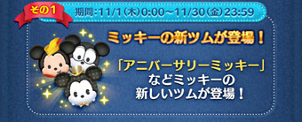 LINEディズニー ツムツム(Tsum Tsum)にて、2018年11月1日よりミッキー90周年記念として「ミッキーマウス90thアニバーサリー特別キャンペーン」が開催されています。