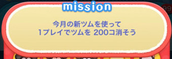 1枚目3個目のミッション「今月の新ツムを使って1プレイでツムを200個消そう」の攻略法です。