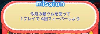 1枚目4個目のミッション「今月の新ツムを使って1プレイで4回フィーバーしよう」の攻略法です。