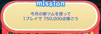 1枚目5個目のミッション「今月の新ツムを使って1プレイで750,000点稼ごう」の攻略法です。