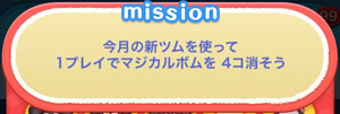 このミッションは、新ツムを使ってマジカルボムを4個消すとクリアになります。