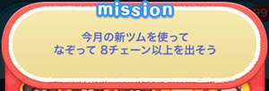 1枚目8個目のミッション「今月の新ツムを使ってなぞって8チェーン以上を出そう」の攻略法です。