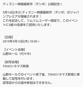 【ツムツム】3月14日映画「ダンボ」ジャパンプレミアご招待キャンペーンまとめ